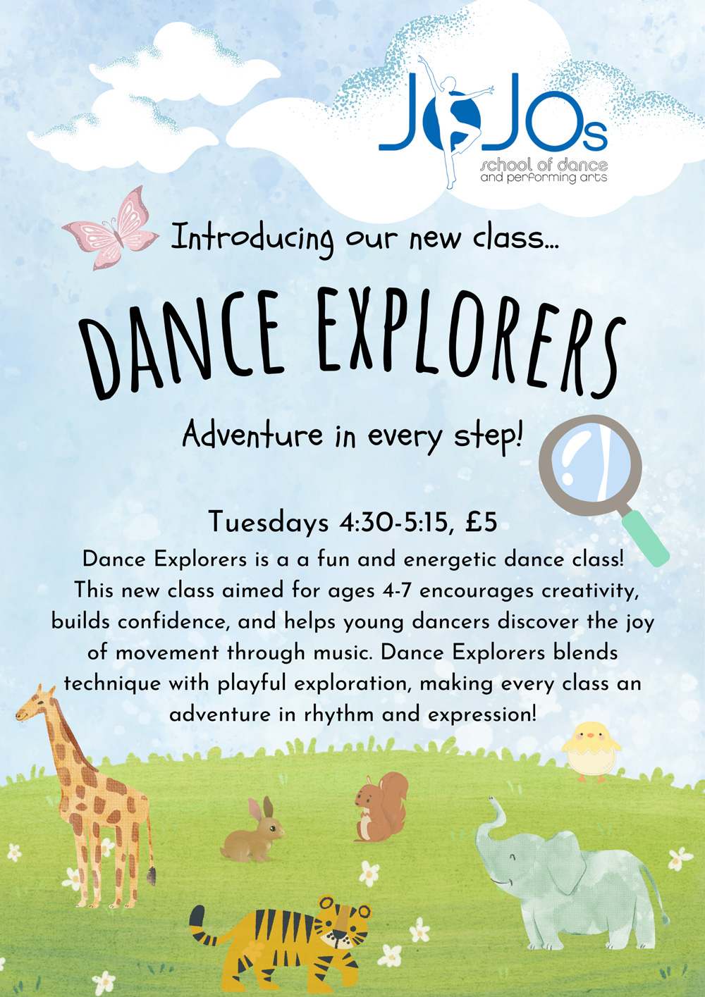 Dance Explorers is a new class for young students ages 4-7 and encourages creativity and builds confidence. This class blends technique with movement, discovering and exploring exciting places, animals and traditions in a playful environment.